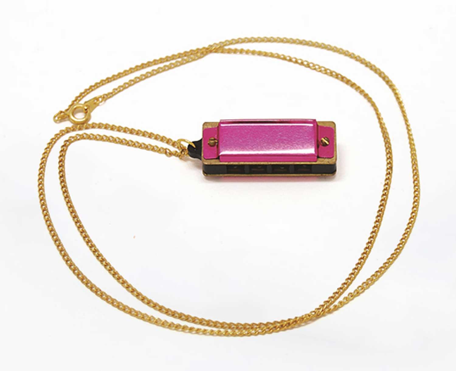 5 hole pink harmonica with a necklace